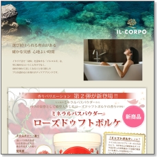《イルコルポミネラルバスパウダー》は宮古島で採種される雪塩と海藻エキスを配合したユーカリベースの香りが特徴。
